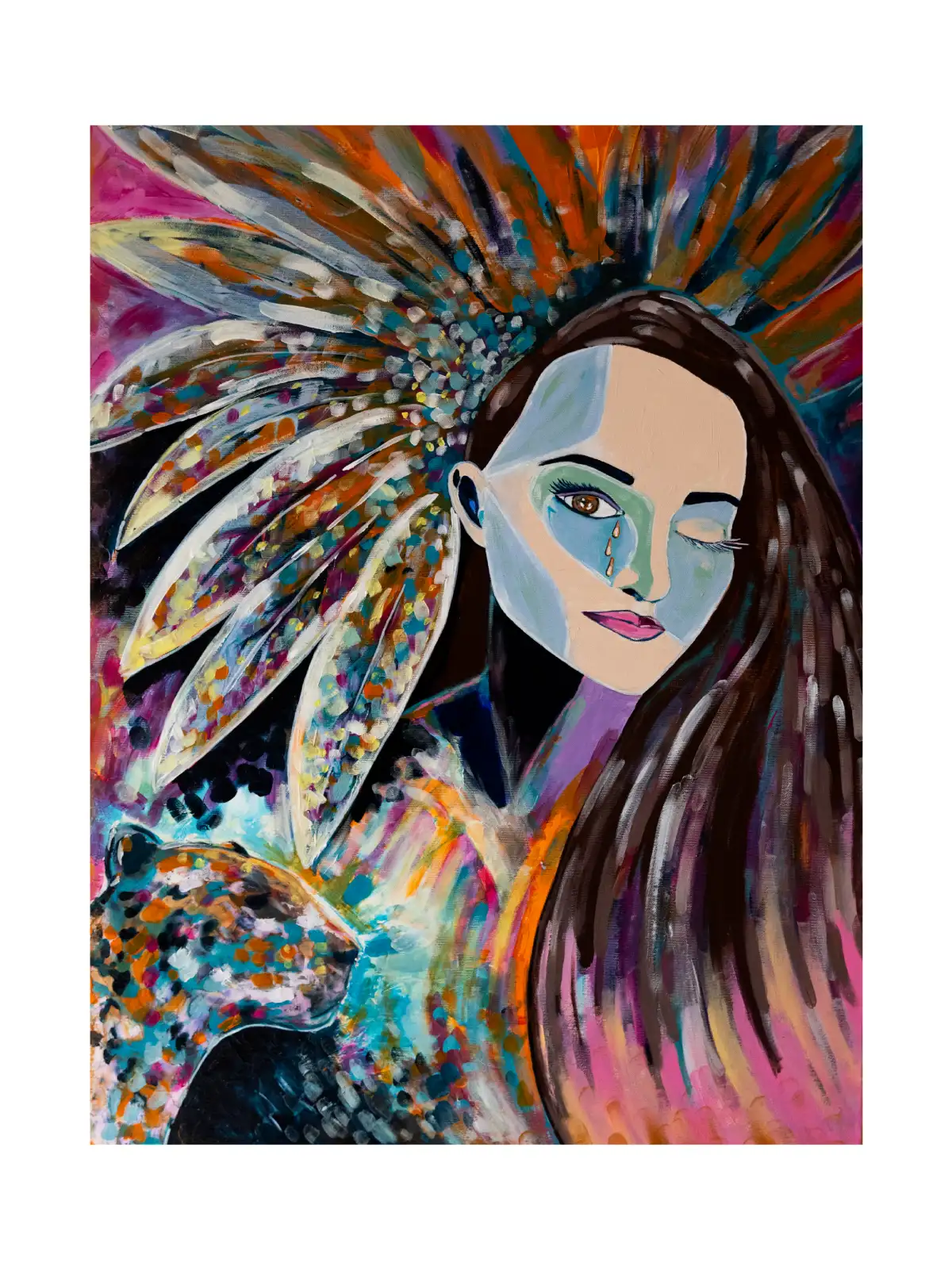 „Autoportret M” to intymny i szczery zapis emocji. Obraz ukazuje wewnętrzny świat artystki – pełen wrażliwości, napięcia i autentyczności. To plakat, który zatrzymuje spojrzenie i zmusza do refleksji, stając się symbolicznym lustrem naszych własnych uczuć.