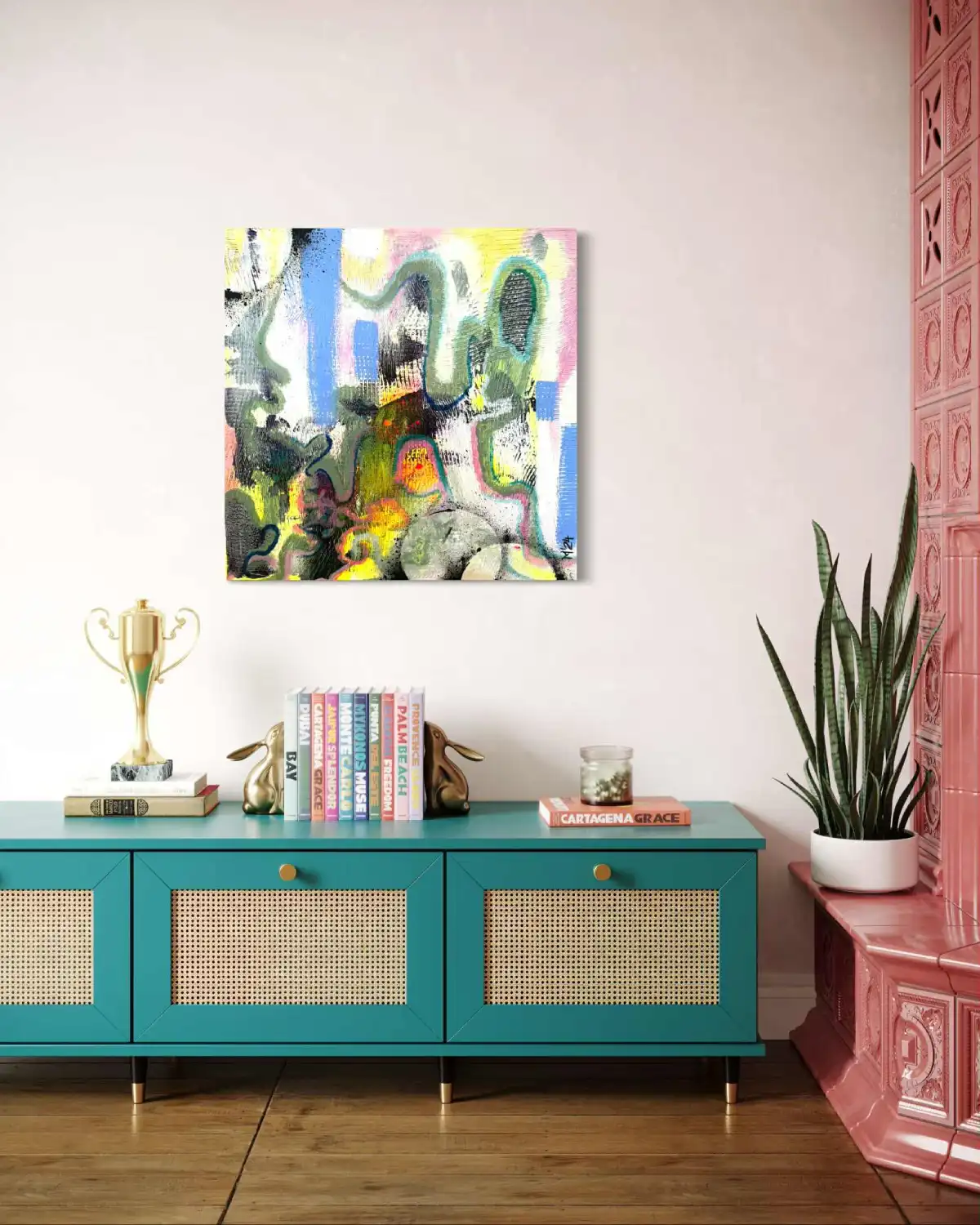 Obraz doskonale odnajdzie się w nowoczesnych salonach, wnętrzach inspirowanych art déco oraz w przestrzeniach kreatywnych, gdzie stanie się centralnym punktem wnętrza, nadając mu indywidualny charakter.