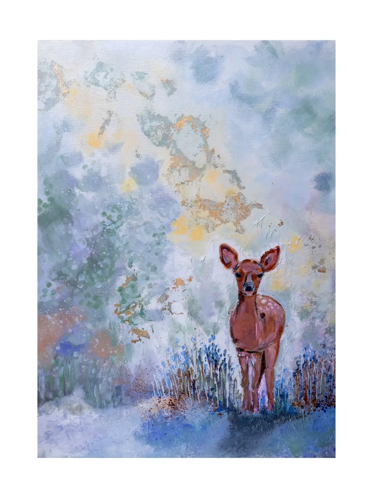 „Ufność” to plakat z sarną pastelowy, który przenosi Cię w cichy, oniryczny świat natury. Wśród miękkich barw, mgieł i złotego światła pojawia się młoda sarna – symbol spokoju, wrażliwości i harmonii. Jej spojrzenie – pełne delikatności i ufności – zaprasza do zatrzymania się i wsłuchania w szept lasu. Ten artystyczny plakat został stworzony z myślą o wnętrzach, które mają emanować ciepłem, uważnością i naturalnym pięknem. Idealny do salonu, sypialni, pokoju dziecka lub gabinetu terapeutycznego. Autorski projekt drukowany na wysokiej jakości papierze – dostępny w kilku formatach.
